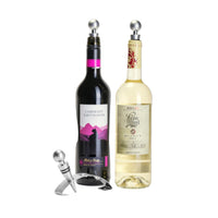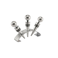The three piece wine stopper set is a stylish combination of three high quality wine stoppers made from stainless steel in a matt finish with a separate stand for easy storage. Each wine stopper has 3 silicone rings to help with securing into varying bottle neck sizes. Fits the majority of wine bottles 750ml both red and white still wine.