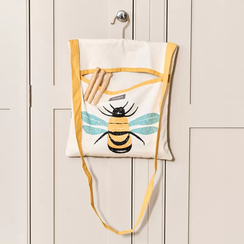 Keep all your clothes pegs handy when you're hanging laundry with this bee-autifully designed peg bag.