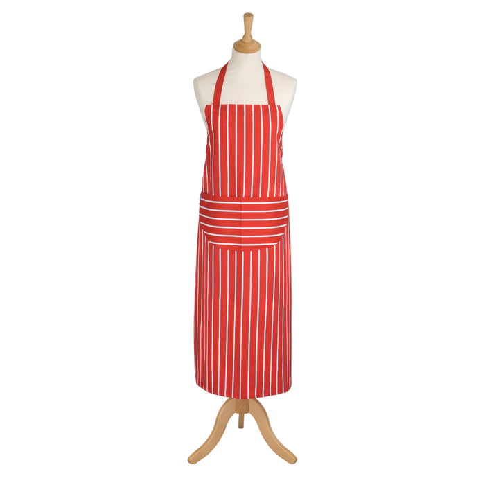 Title: Rushbrookes Butchers Stripe Long Adult Apron (Made in UK) - Red