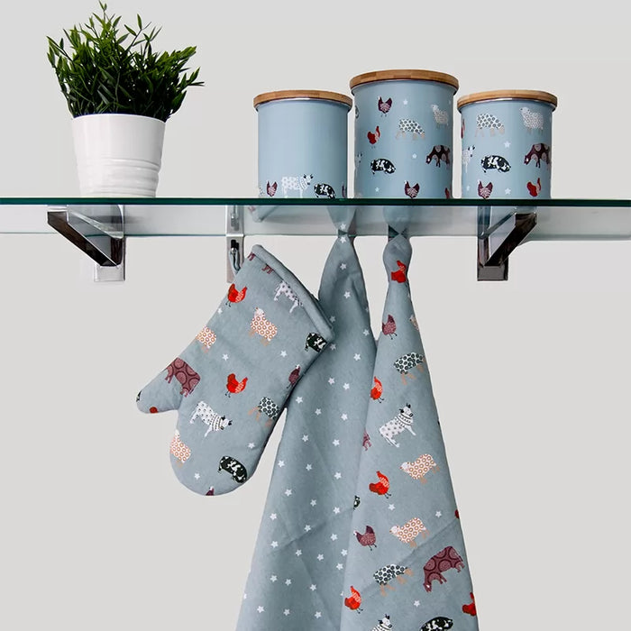 Meow Recycled Cotton Double Oven Gloves - Blue