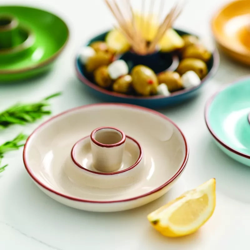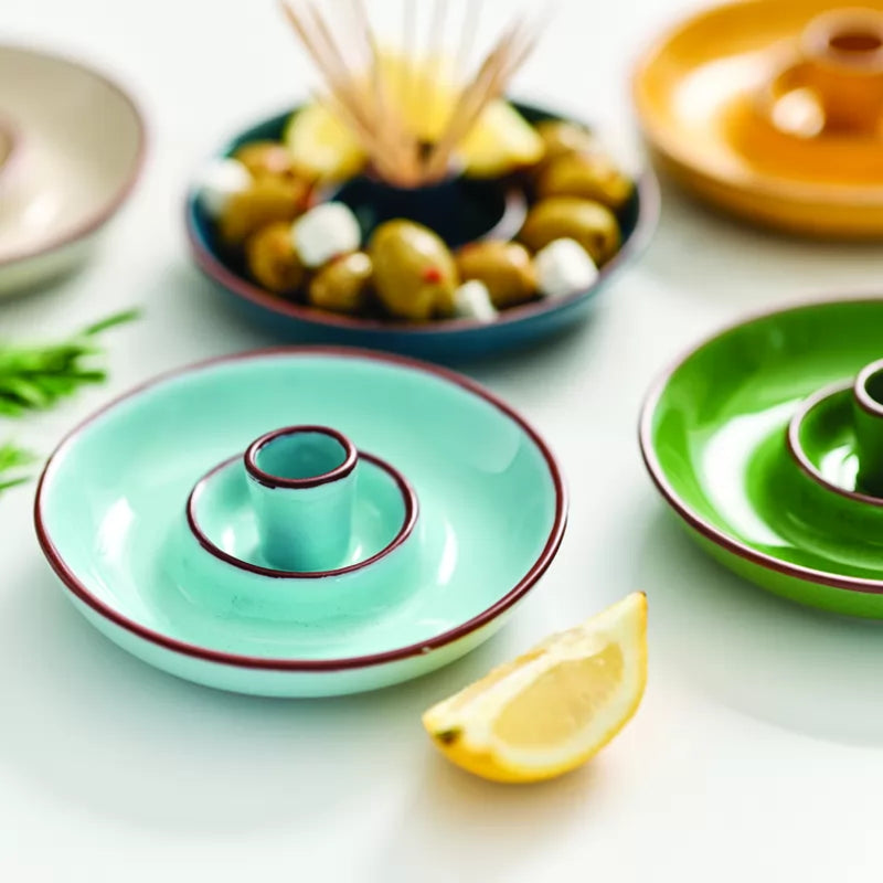Serve olives, nuts, and small bites in style with the Sintra Glazed Terracotta Olive Dish.