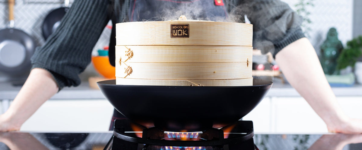 School of Wok 10" 2-Tier Bamboo Steamer