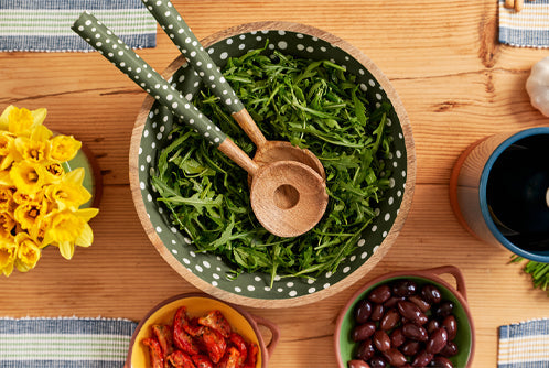 Sintra Mango Wood Spotted Salad Bowl in Olive Green | Stylish Eco-Friendly Serveware