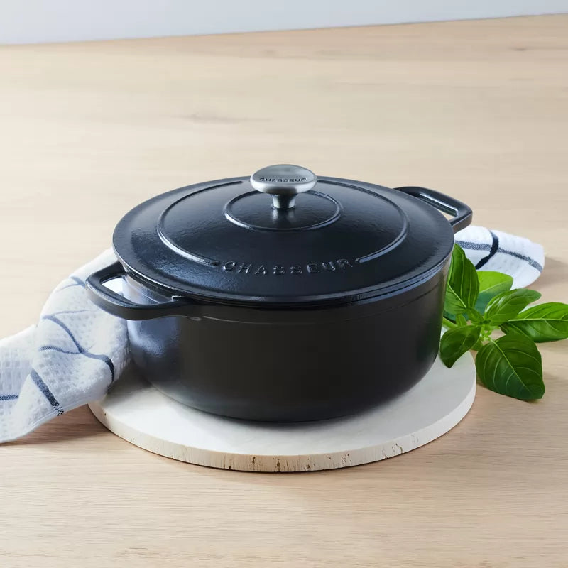 A staple for any kitchen, this 3.2 Litre Cast Iron Casserole dish from Chasseur combines premium product at a more affordable price than other brands. The Chasseur Cast Iron range have an optimal gauge on all pieces, to promote unsurpassed heat distribution and retention and no hot spots as well as a cleverly designed self-basting lid to circulate moisture during the cooking process. Made from 80% recycled material, this Cast Iron dish is skilfully hand enamelled by trained experts. The products life-time guarantee offers piece of mind, meaning you can use this dish Oven to table time after time. Key Features . Lifetime Guarantee . Self-Basting Lid . Suitable for any Oven or Hob type . Even Heat Distribution . Hand Crafted . Ergonomic Handles