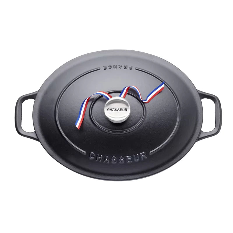 A staple for any kitchen, this 3.6 Litre Cast Iron Oval Casserole Dish from Chasseur combines premium product at a more affordable price than other brands. The Chasseur Cast Iron range have an optimal gauge on all pieces, to promote unsurpassed heat distribution and retention and no hot spots as well as a cleverly designed self-basting lid to circulate moisture during the cooking process. Made from 80% recycled material, this Cast Iron dish is skilfully hand enamelled by trained experts. The products life-time guarantee offers piece of mind, meaning you can use this oval dish Oven to table time after time. Key Features . Lifetime Guarantee . Self-Basting Lid . Suitable for any Oven or Hob type . Even Heat Distribution . Hand Crafted . Ergonomic Handles . Classic oval shape with redesigned base for easier serving of food