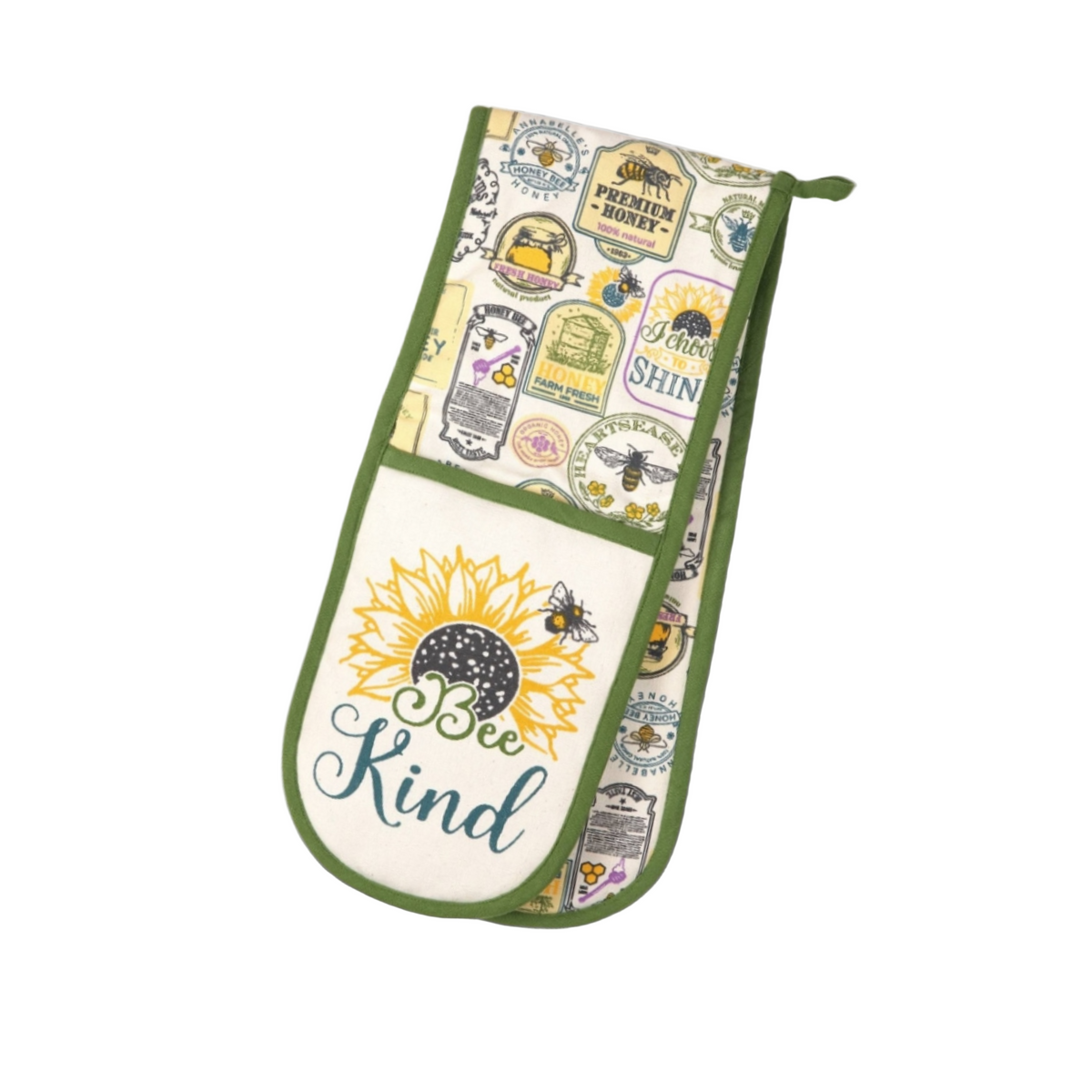 Adorned with vintage-inspired honey labels and a charming “Bee Kind” sunflower design, it’s both heartwarming and heat-resistant!