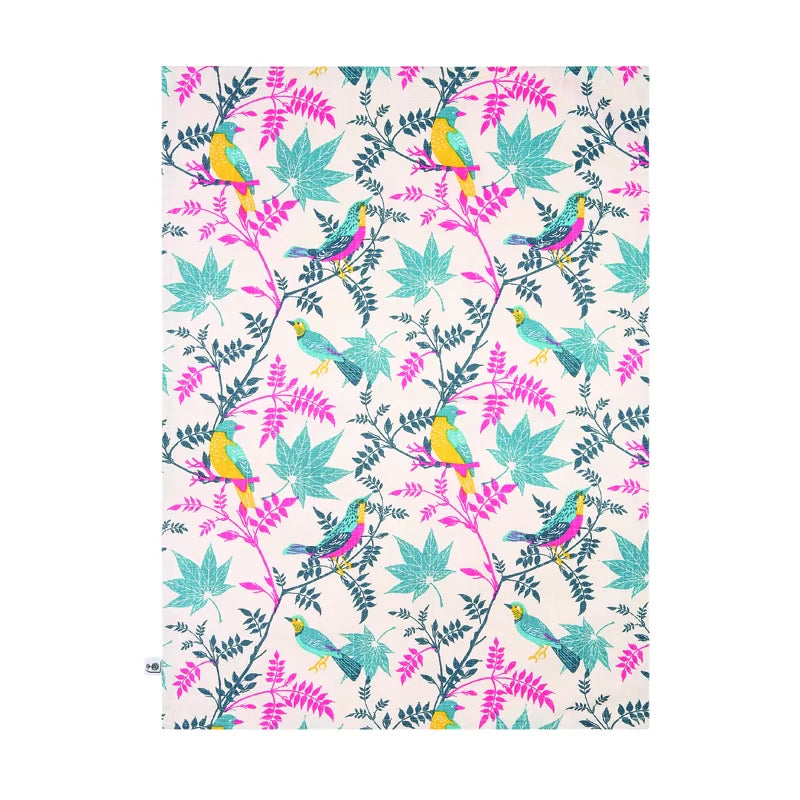 Dry your dishes in style with these set of 2 tea towels. Made from organic cotton yarn that is kinder to the environment as it uses less water, reduces soil erosion and does not use hazardous manmade pesticides. It also benefits the farmers who can grow additional crops alongside the cotton and maintains the biodiversity of the soil. With a stone background, the heritage inspired design features foliage and birds in teal, pink and yellow. The print was sourced directly from the Royal Horticultural Society (RHS) Lindley Collections which houses the world's finest collection of books and printed materials on gardening and outstanding collections of archives, photography and botanical art. � The Royal Horticultural Society. Trade marks of the Royal Horticultural Society (Registered Charity No 222879/SC038262) and used under licence from RHS Enterprises Limited.