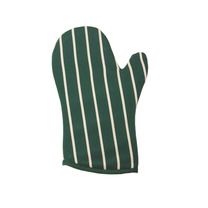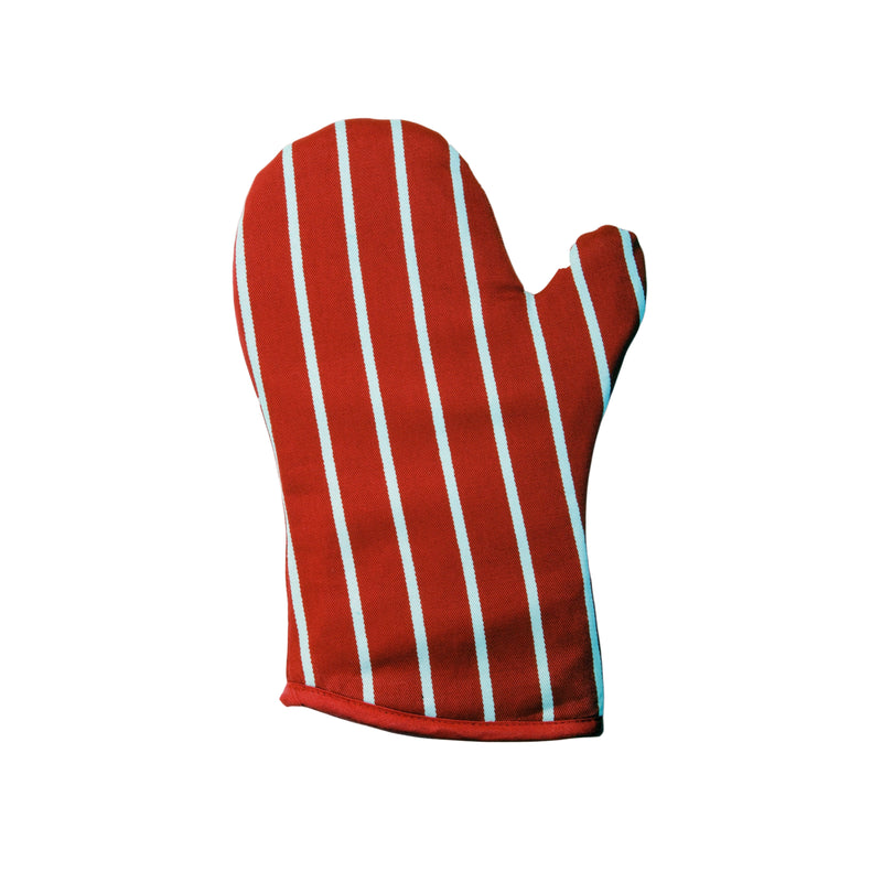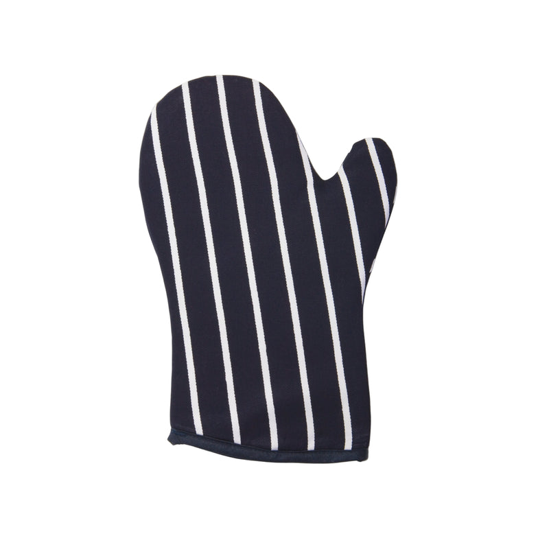 Part of our classic Butcher's Stripe range of kitchen textiles. Some cooks prefer double oven gloves, some prefer gauntlets: it's a pure matter of personal choice. Both are made in the UK, and both co-ordinate fully with our Butchers Stripe aprons. Made using the traditional 'discharge' technique from 100% cotton drill, with polyester lining plus a steam/grease barrier. This product complies with British Standard BS6526:1998. Wash as synthetics, 40 degrees, short spin, do not wring, wash dark colours separately.
