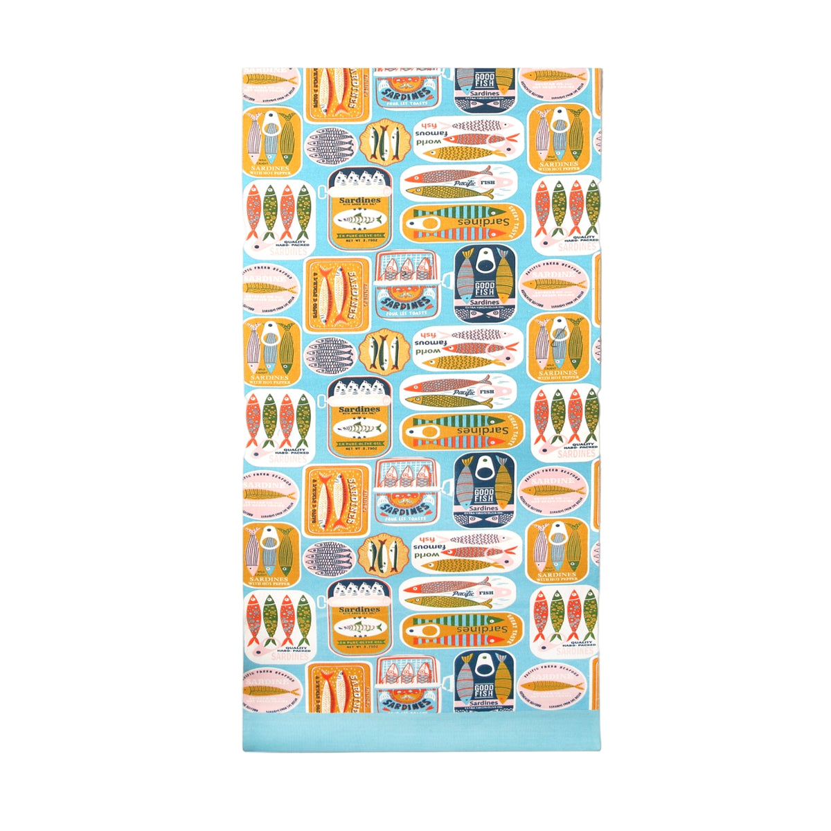Featuring a quirky and colourful print of vintage-style sardine tins, it brings a fun, coastal vibe to any setting, it’s perfect for everything from summer suppers to seaside-themed gatherings.