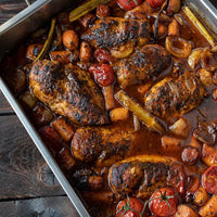 The Dexam Supreme Roasting Tins are the ideal addition to your kitchen, whether getting the family together for a special occasion or simply cooking up a mid-week diner our roasting pans will never let you down. Made from top quality 18/10 stainless-steel and featuring a handle on each side for easy carrying and storage, these pans are also dishwasher safe meaning hassle free cleaning. With a 10-year guarantee giving you piece of mind that you can use these to create fantastic food at home time after time. This roasting tin in size 35 x 26cm fits perfectly with the 32 x 22cm cooling rack from Dexam Supreme.